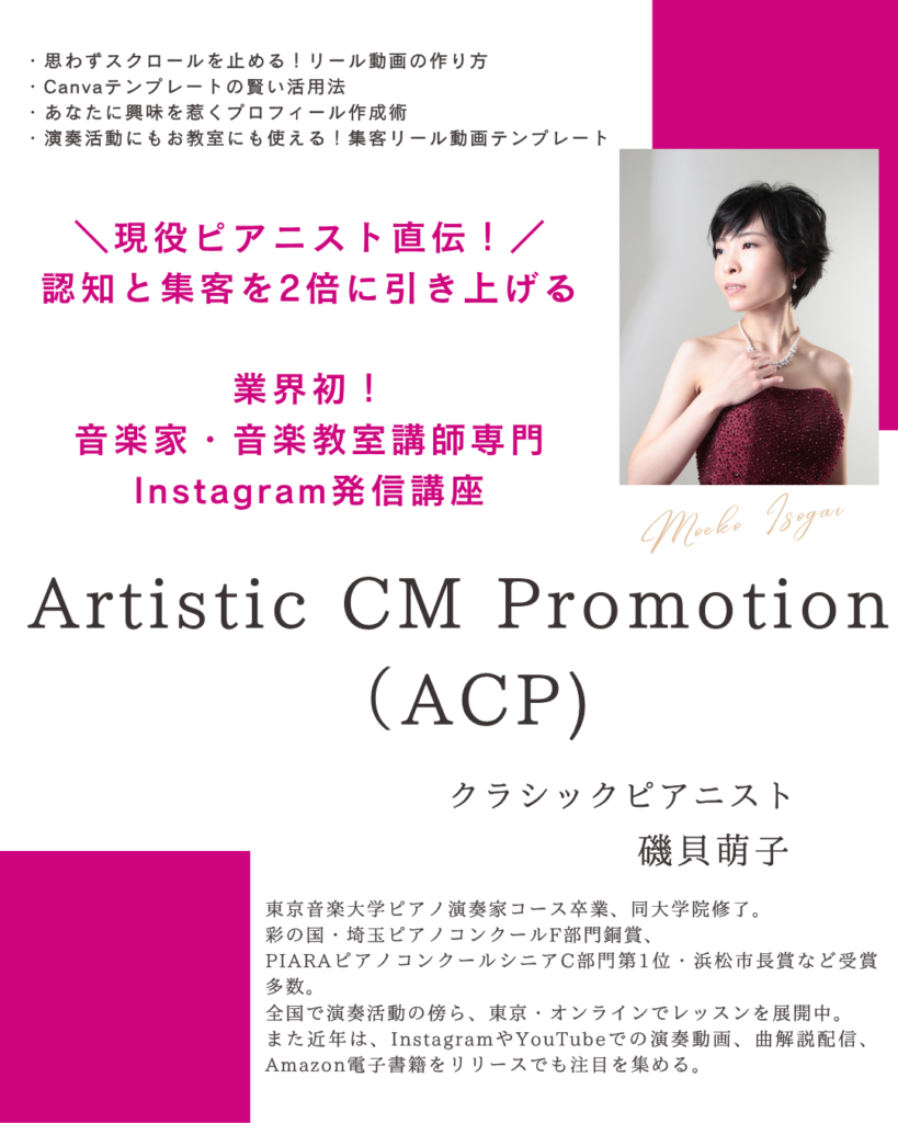 音楽家・音楽教室講師専門Instagram発信講座『Artistic CM Promotion』